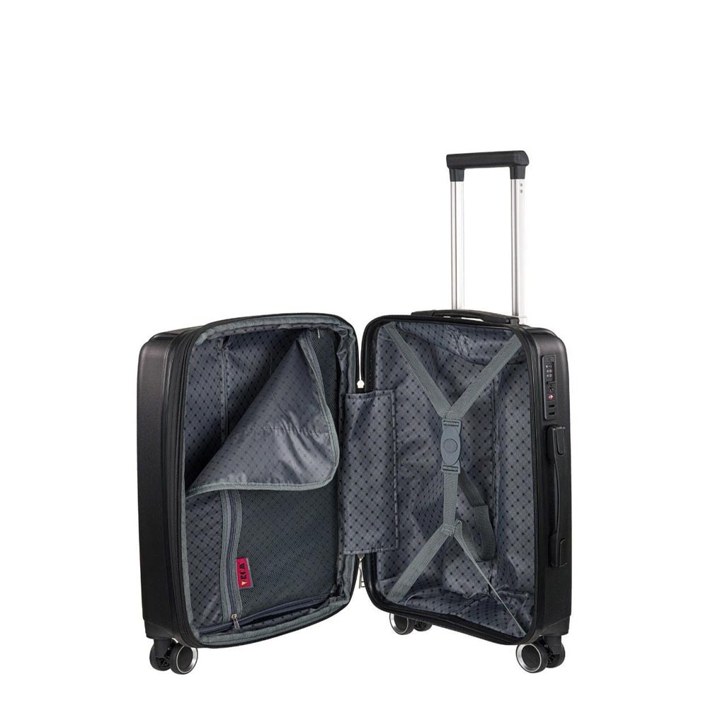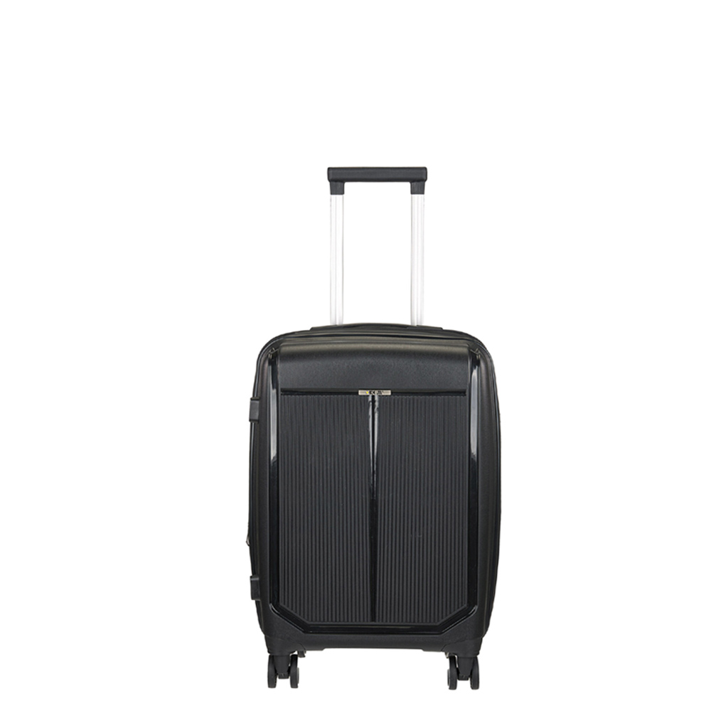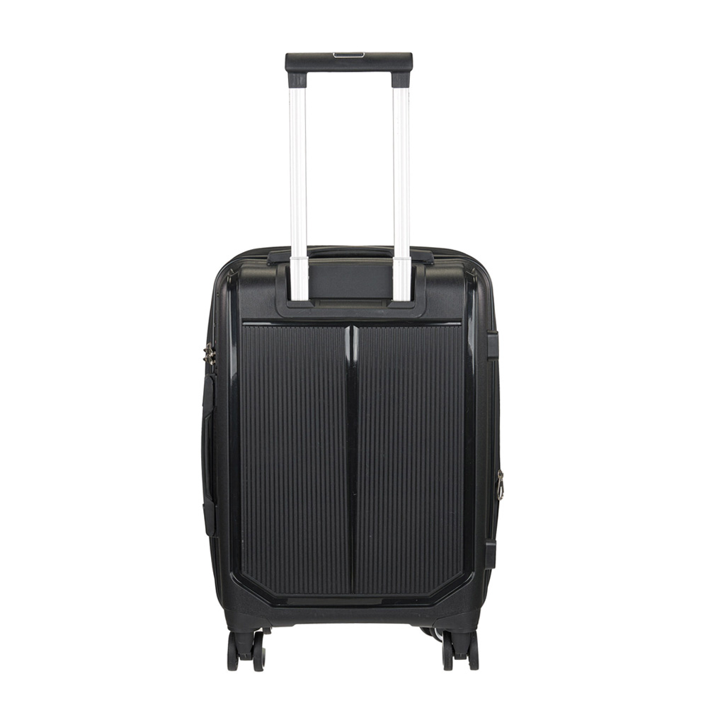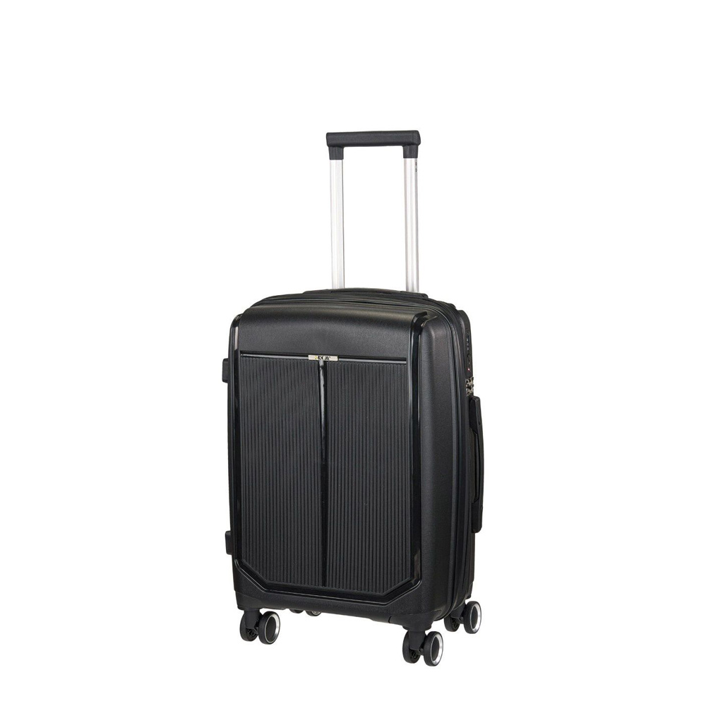 Βαλίτσα σκληρή, μικρή, επεκτάσιμη, καμπίνας σε μαύρο χρώμα, με τέσσερις διπλές ρόδες της RCM. Είναι κατασκευασμένη από υλικό εξαιρετικής ποιότητας και αντοχής, μηχανισμό από αλουμίνιο, ρόδες ιδιαίτερα ευέλικτες. Κλειδώνει στην δεξιά πλευρά με κλειδαριά συνδυασμού με το σύστημα TSA και συνοδεύεται από εγγύηση αντιπροσωπείας δύο ετών.