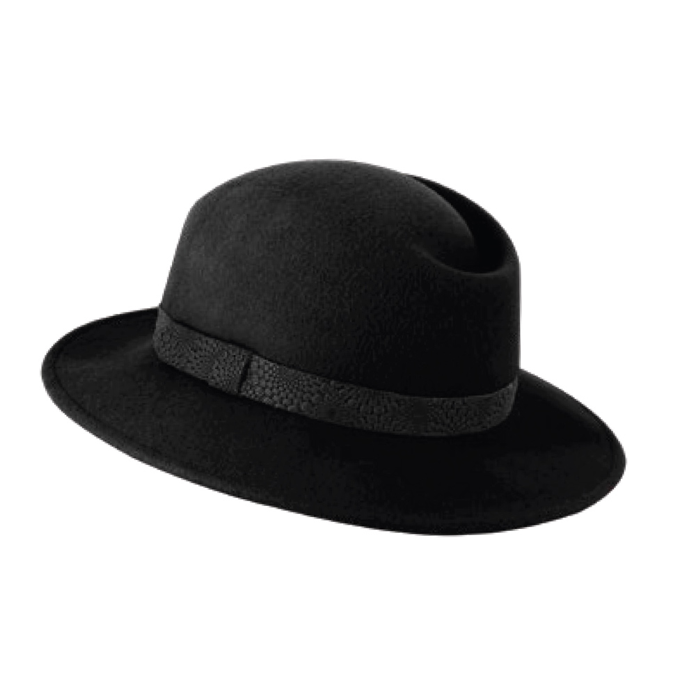 Καπέλο μάλλινο, γυναικείο σε μαύρο χρώμα στολισμένο με ανάγλυφο λουράκι. Ένα  ξεχωριστό καπέλο που θα δώσει έμφαση στην όλη σας εμφάνιση.