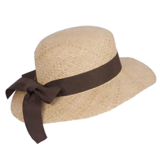 Καπέλο γυναικείο από ψάθα raffia, καλοκαιρινό, με μεσαίο γείσο στολισμένο με καφέ γκρο κορδέλα δεμένη φιόγκο στο πίσω μέρος. Ένα καπέλο εξαιρετικά δροσερό και ελαφρύ κατάλληλο για όλες τις ώρες.
