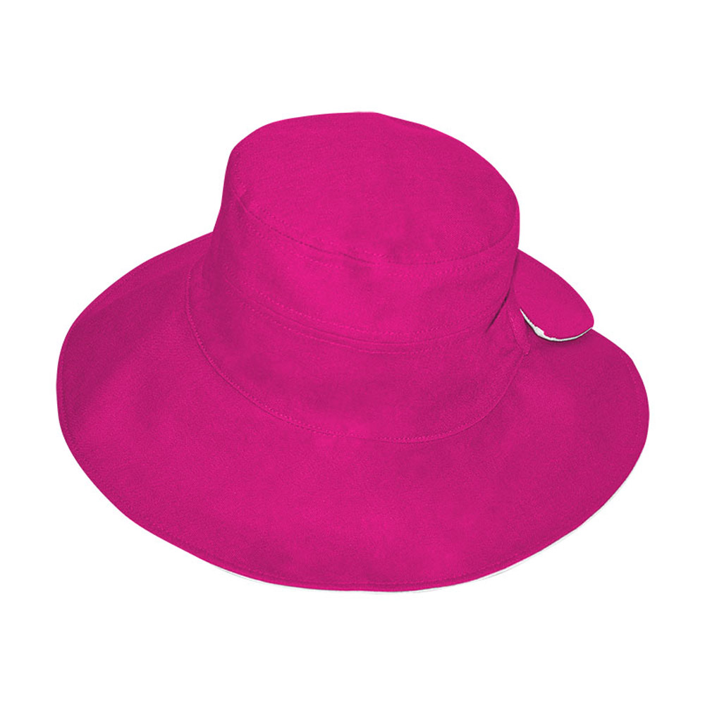 Καπέλο γυναικείο πάνινο καλοκαιρινό δύο όψεων φούξια - λευκό με ρυθμιζόμενο μέγεθος.