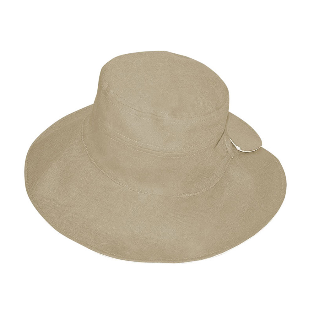 Καπέλο γυναικείο πάνινο καλοκαιρινό δύο όψεων μπεζ - λευκό με ρυθμιζόμενο μέγεθος.