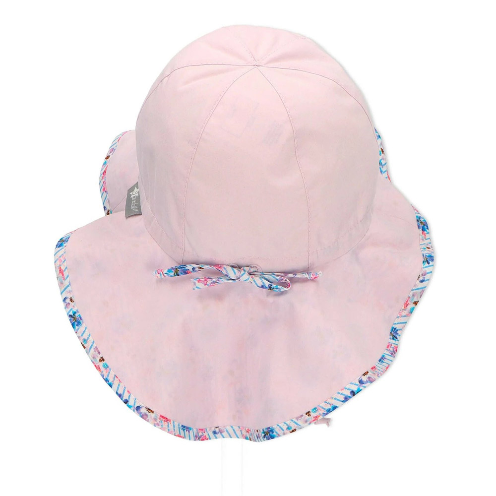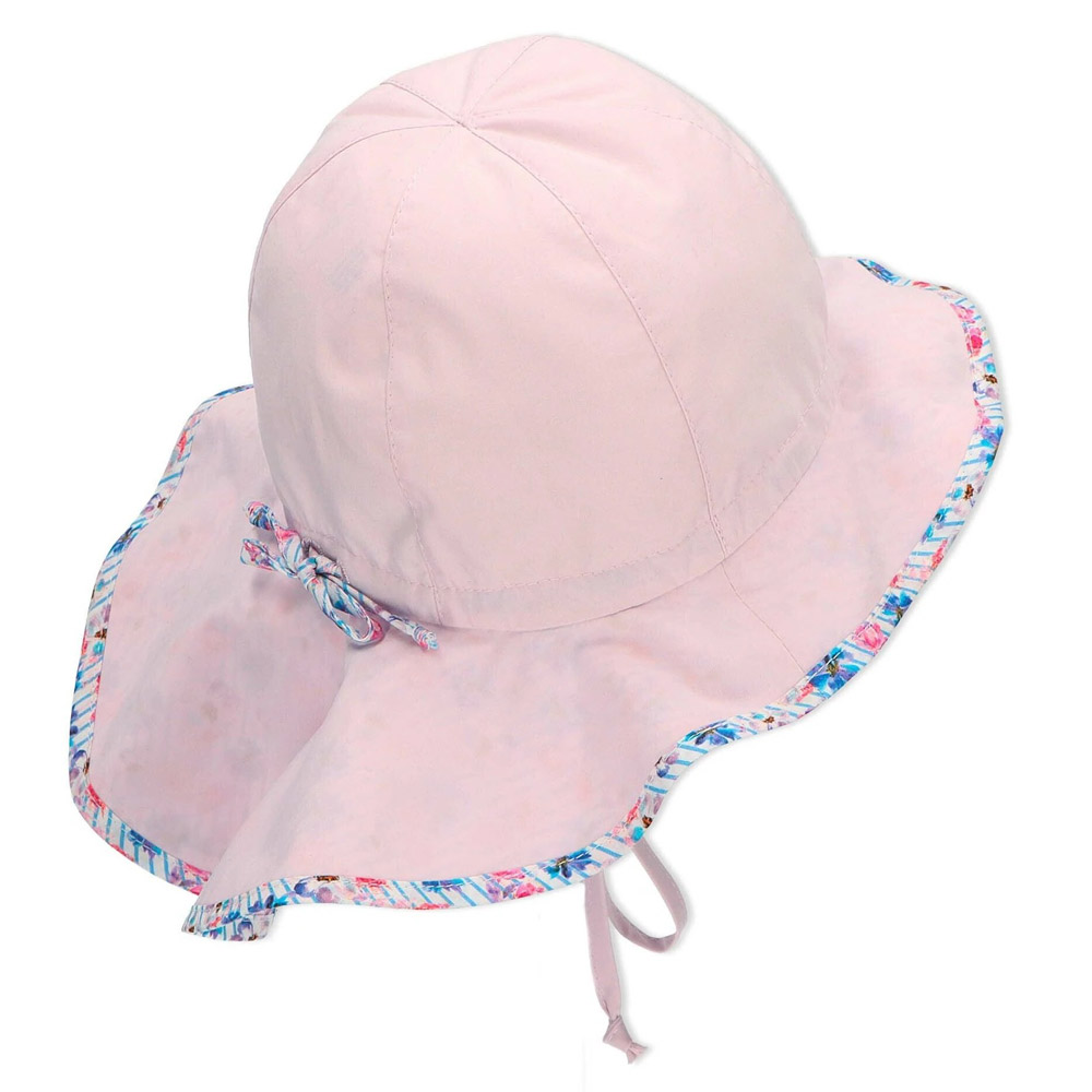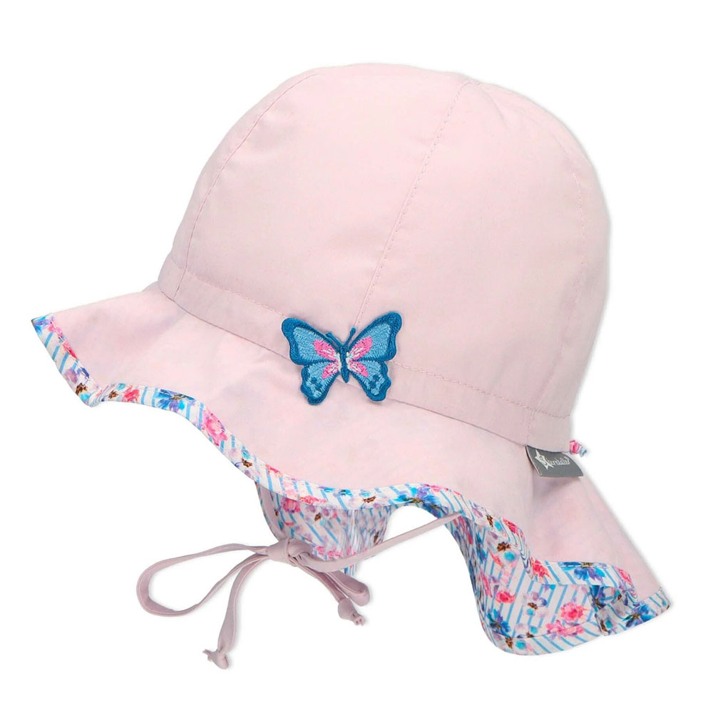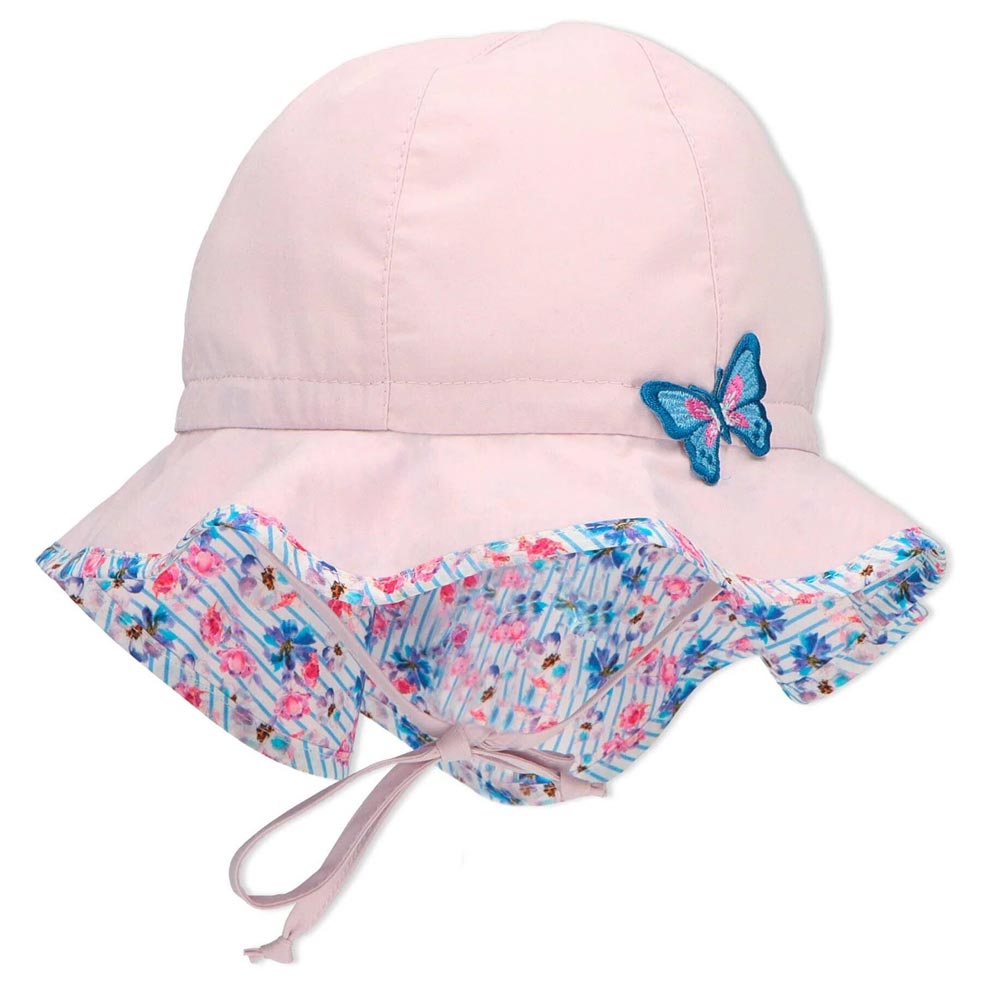 Καπέλο καλοκαιρινό βαμβακερό, κοριτσίστικο με μπαντάνα και αντηλιακή προστασία σε λιλά χρώμα από την Sterntaler. Το μέγεθος του ρυθμίζεται με κορδόνι στο πίσω μέρος.