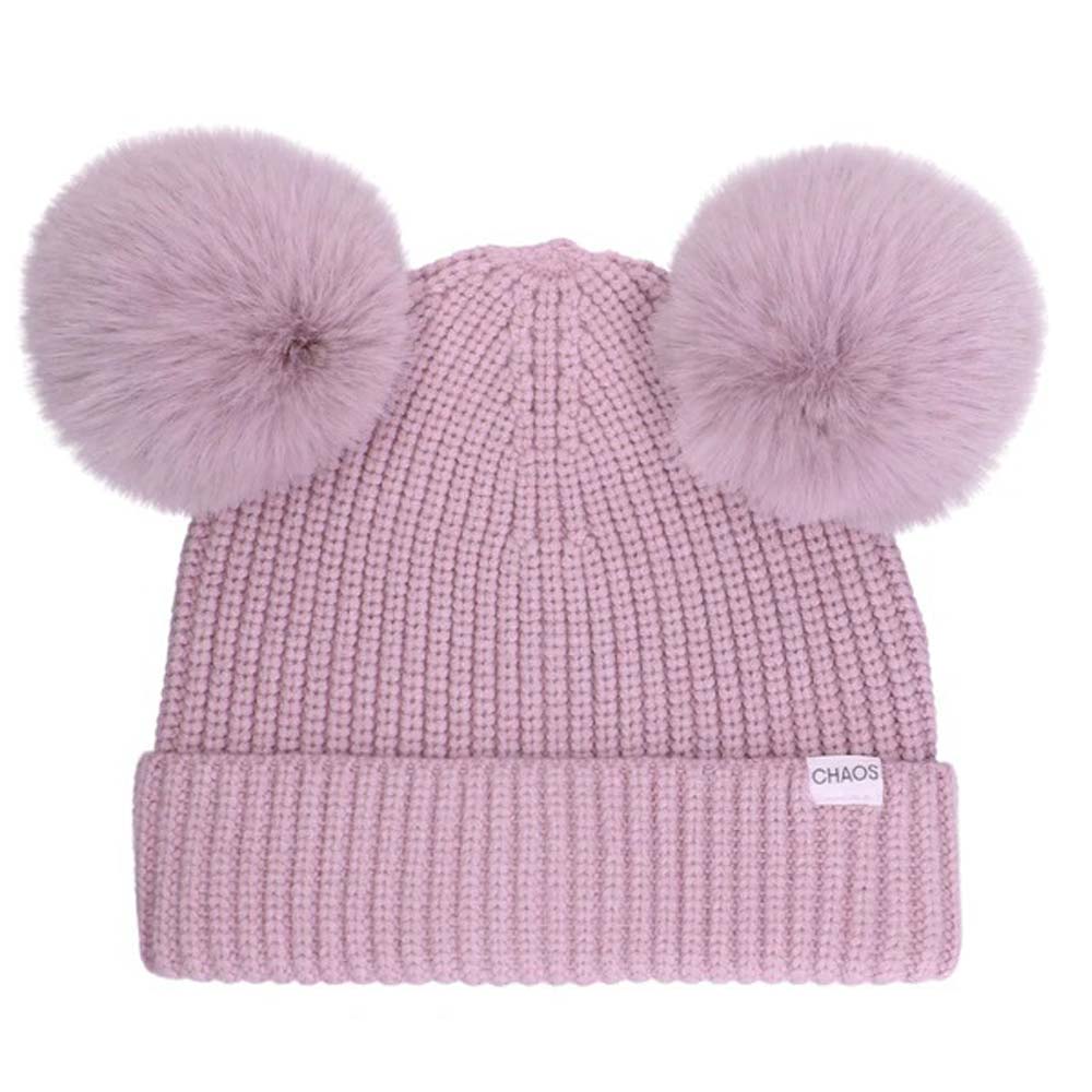 Καπέλο σκουφάκι παιδικό χειμερινό πλεκτό σε λιλά χρώμα στολισμένο με δύο πομ - πον από την Chaos.