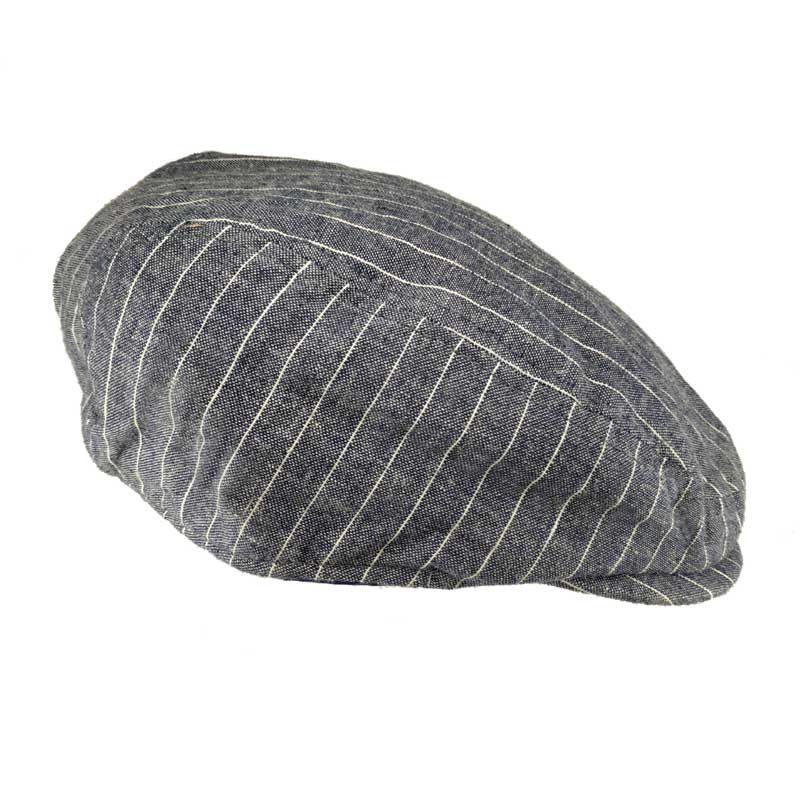 Κλασική τραγιάσκα, καλοκαιρινή σε μπλε χρώμα με ρίγες και ελαστικότητα στο πίσω μέρος. Ένα καπέλο ελαφρύ και δροσερό, ιδανικό για να συνοδεύσει την σπορ εμφάνιση σας.