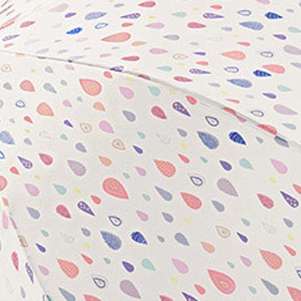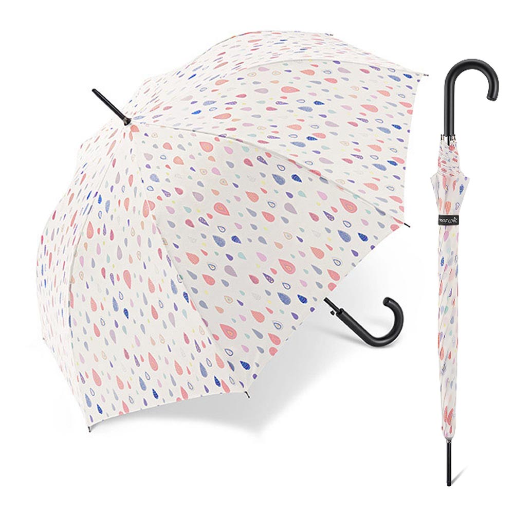 Long automatic windproof umbrella in white color with colorful drops by Happy Rain.