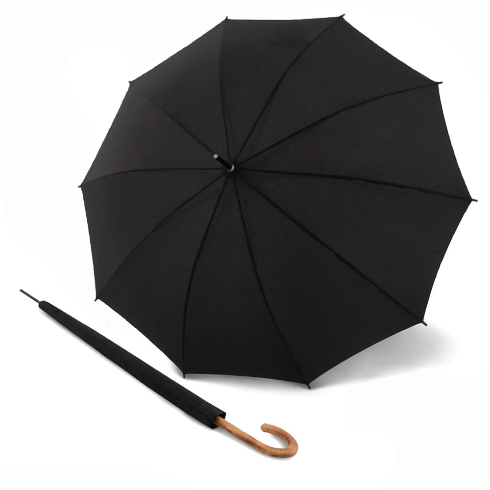 Ομπρέλα μεγάλη, αυτόματη, αντιανεμική από την Knirps. Αποτελείται από σκελετό ιδιαίτερα ανθεκτικό και ευέλικτο ώστε να μπορεί ανταποκριθεί και στις πιο δύσκολες καιρικές συνθήκες, λαβή από ξύλο εμποτισμένη με ειδικό βερνίκι για μεγαλύτερη αντοχή και ύφασμα εξαιρετικής ποιότητας αντοχής και εμφάνισης.