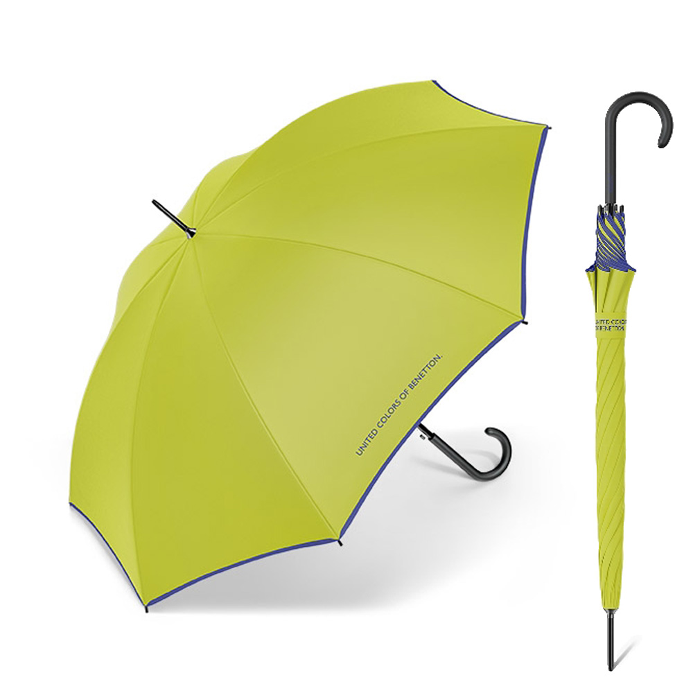 Ομπρέλα μεγάλη, αυτόματη, αντιανεμική, πράσινη με μπλε ρέλι από την Benetton, με το γνωστό ύφος και στιλ της εταιρίας.