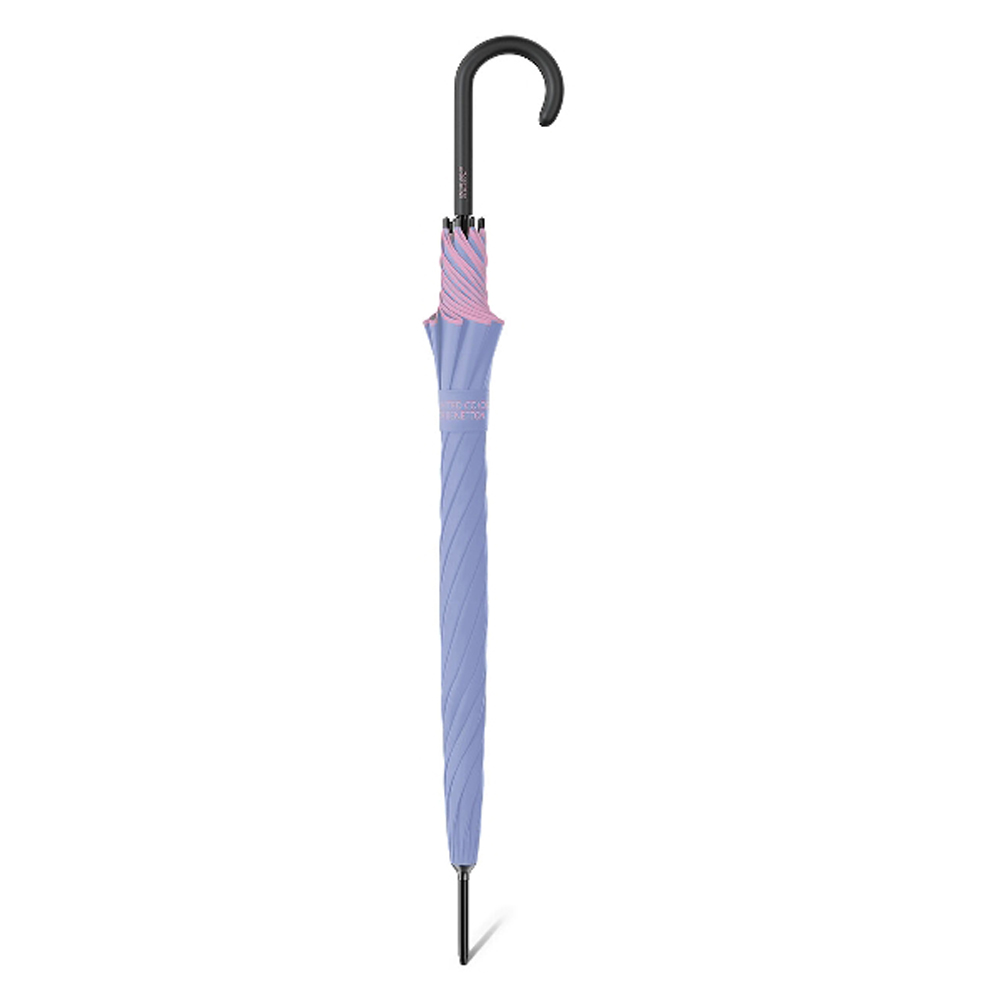 Ομπρέλα μεγάλη, αυτόματη, αντιανεμική, σιέλ με ροζ ρέλι από την Benetton, με το γνωστό ύφος και στιλ της εταιρίας.