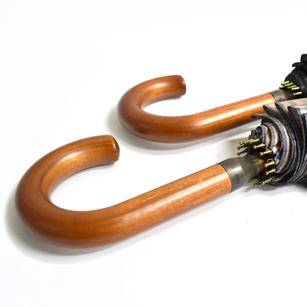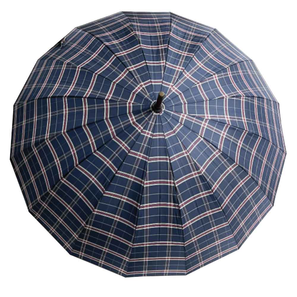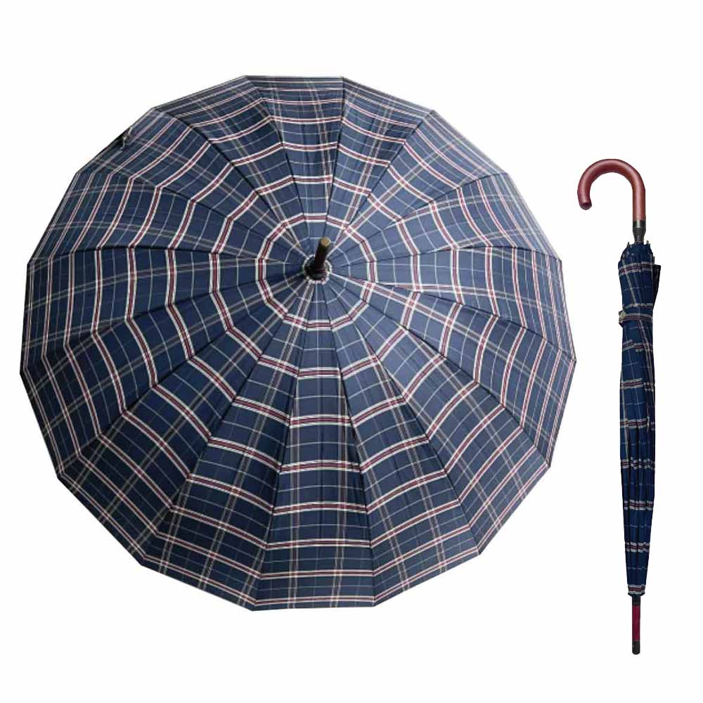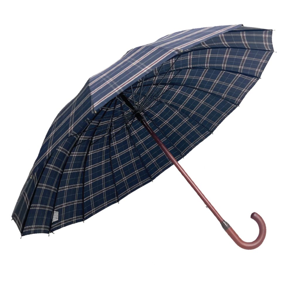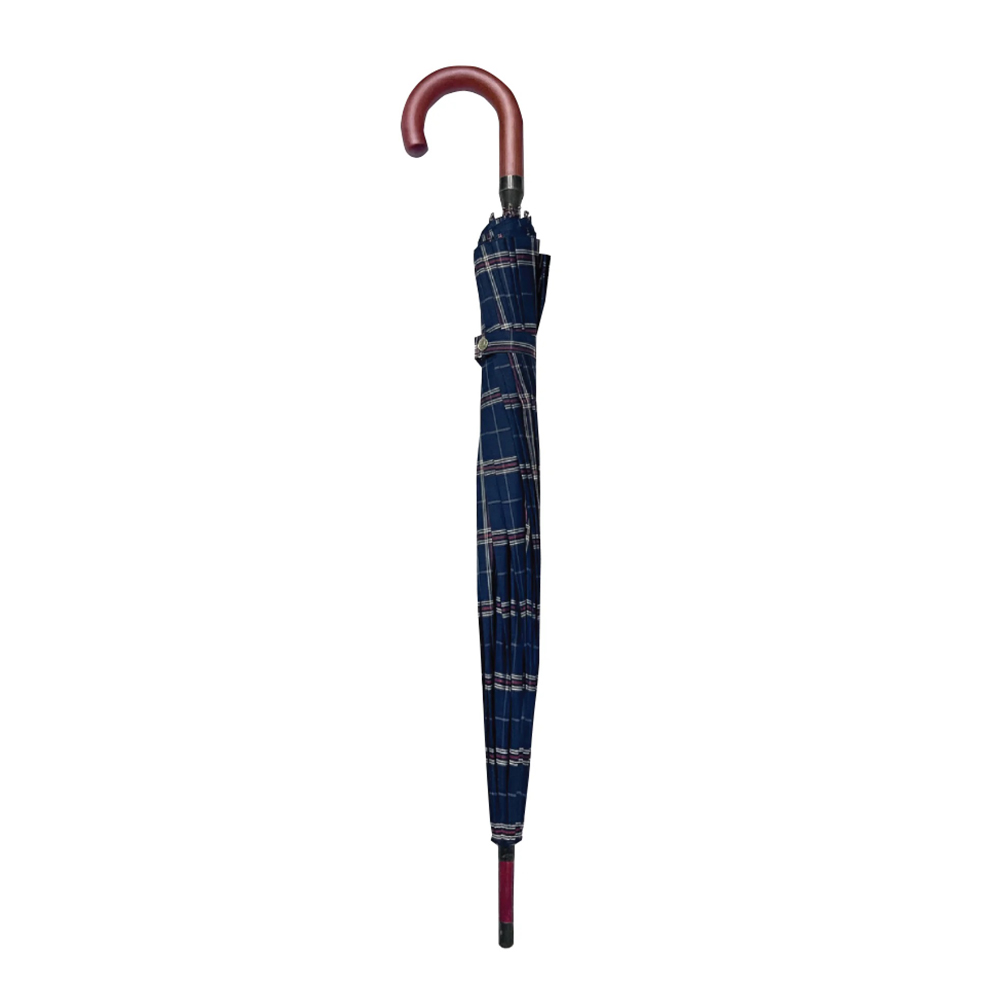 Ομπρέλα  μεγάλη, αντιανεμική, χειροκίνητη από τον Guy Laroche, με εξαιρετικής ποιότητας μπλε καρό ύφασμα και ξύλινο σκελετό με μπρούτζινες λεπτομέρειες και 16 μπανέλες.