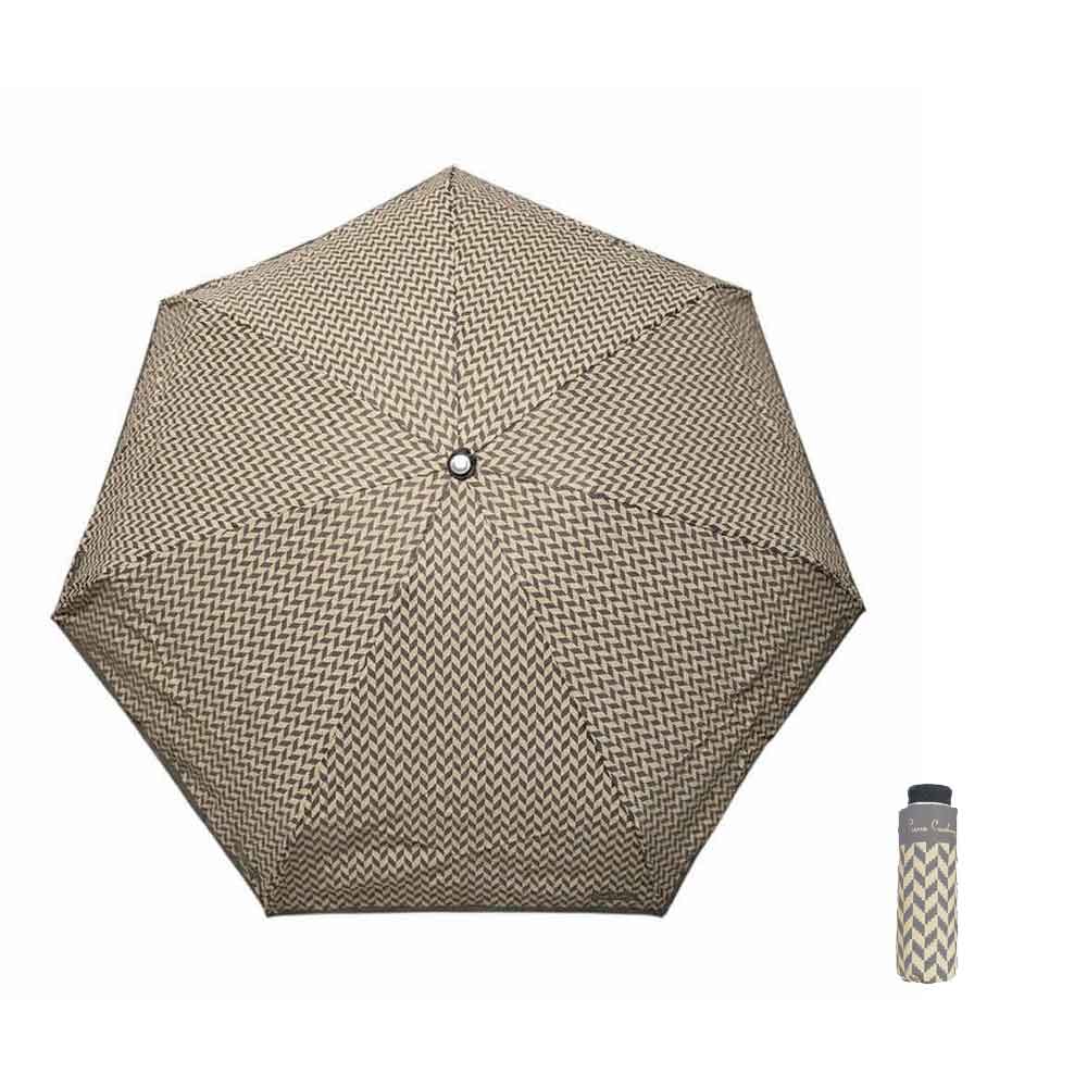 Ομπρέλα γυναικεία, χειροκίνητη, σπαστή, μίνι, αντιανεμική, ψαροκόκαλο, γκρι του Pierre Cardin. Το σχήμα και το μέγεθος της την κάνουν ιδιαίτερα εύχρηστη και πρακτική.