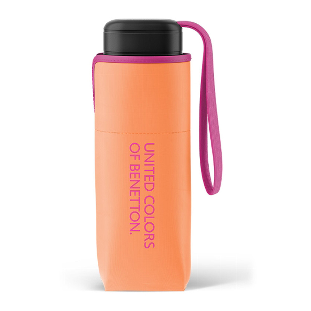 Ομπρέλα σούπερ μίνι, πλακέ, αντιανεμική, σπαστή, χειροκίνητη, πορτοκαλί με κόκκινο ρέλι από την Benetton.
