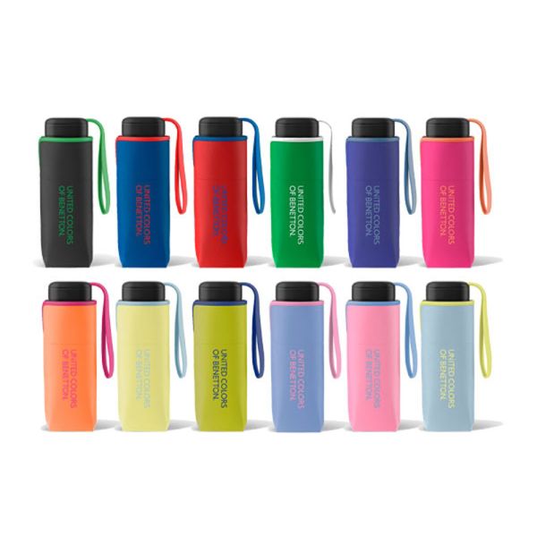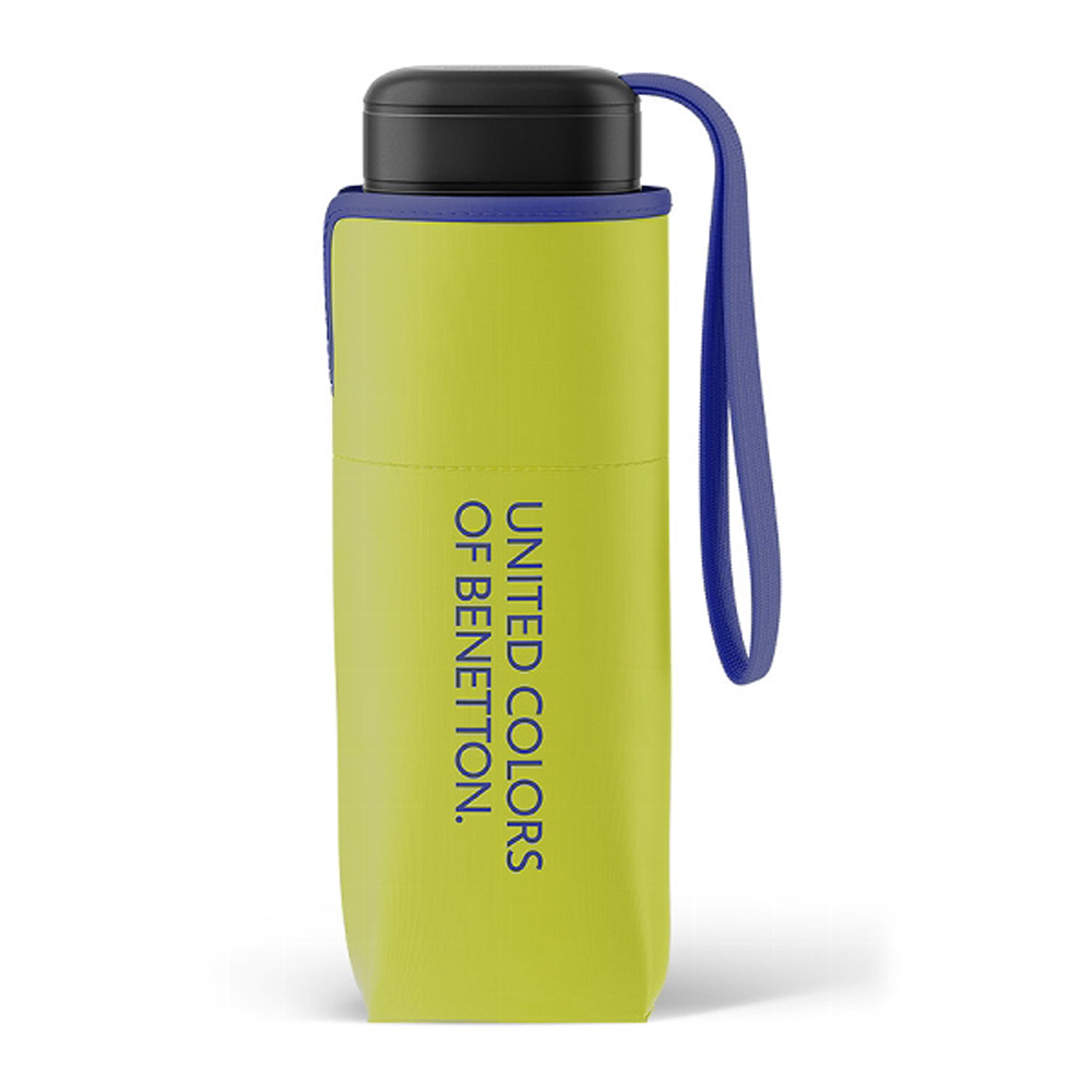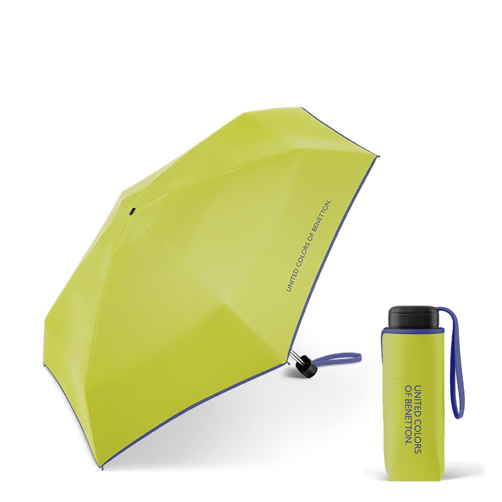 Ομπρέλα σούπερ μίνι, πλακέ, αντιανεμική, σπαστή, χειροκίνητη, πράσινη με μπλε ρέλι από την Benetton.