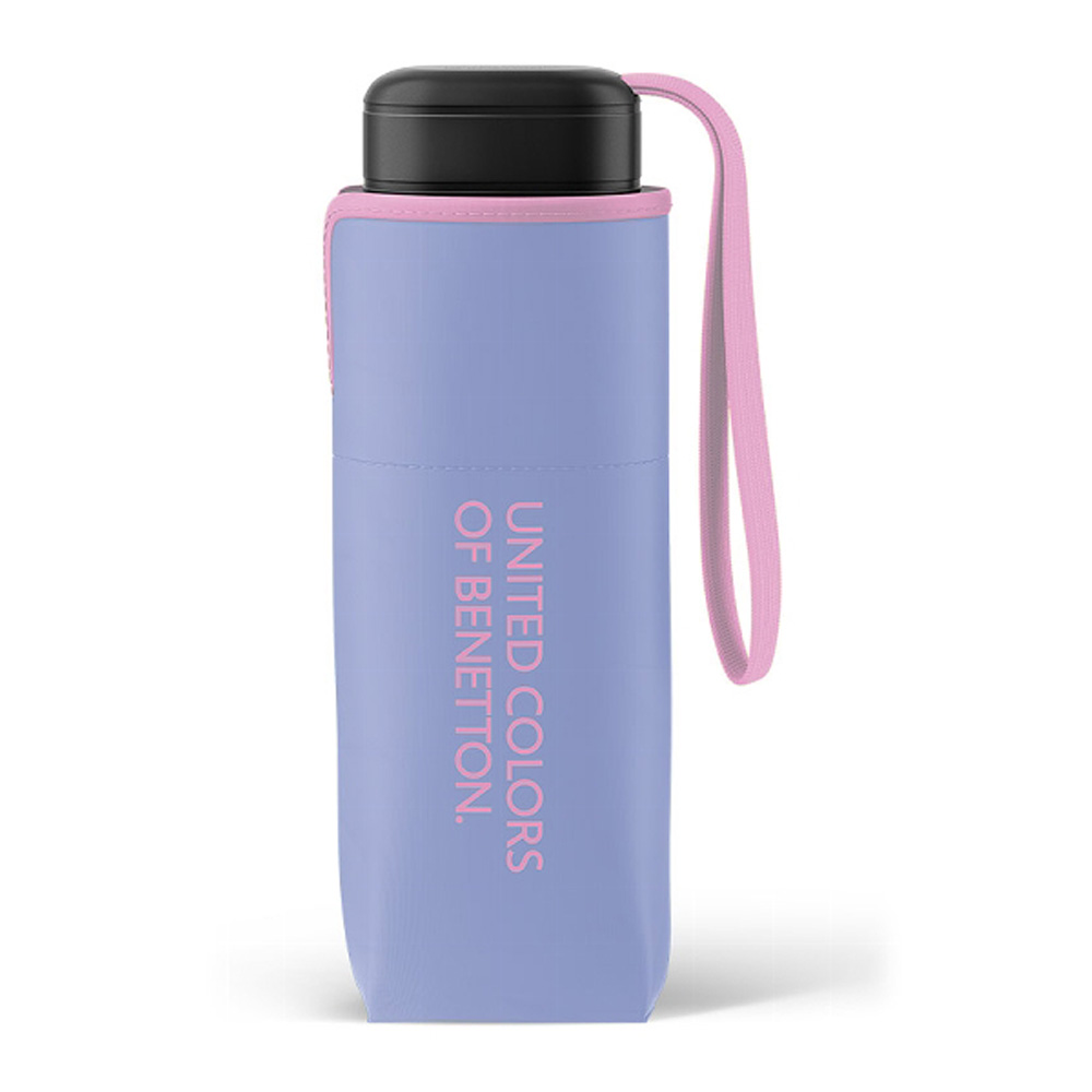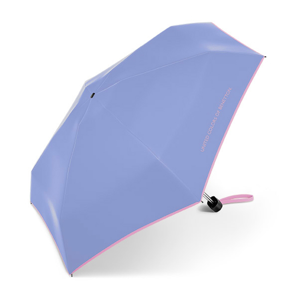 Ομπρέλα σούπερ μίνι, πλακέ, αντιανεμική, σπαστή, χειροκίνητη, σιέλ με ροζ ρέλι από την Benetton.