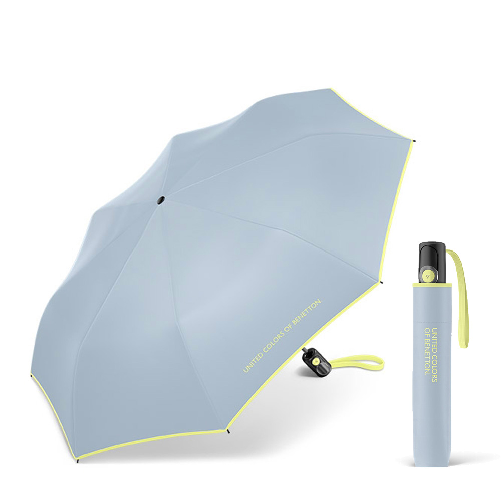 Ομπρέλα σπαστή, αυτόματη, αντιανεμική, γκρι - σιέλ με ρέλι, United Colors Of Benetton. Mία ομπρέλα εξαιρετικά ανθεκτική μοντέρνα και καλαίσθητη.