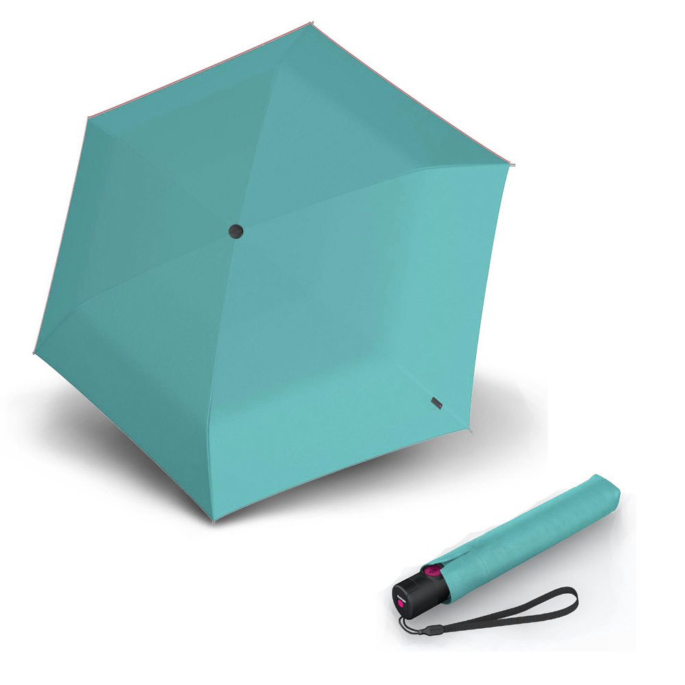 Ομπρέλα αντιανεμική, αντηλιακή με αυτόματο άνοιγμα και κλείσιμο, εξαιρετικά ελαφριά, μονόχρωμη, τιρκουάζ με μαύρη επένδυση. Κατασκευασμένη από ειδικό ύφασμα που προστατεύει από την υπεριώδη ακτινοβολία κατά 99%, ενώ μειώνει την θερμοκρασία κατά 40% και στεγνώνει εξαιρετικά γρήγορα, από την Knirps.