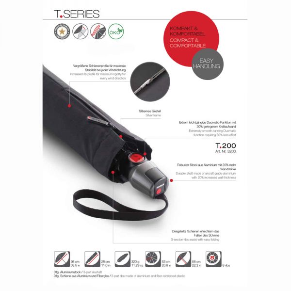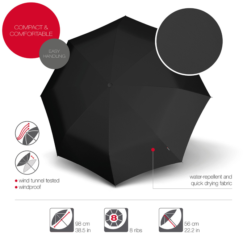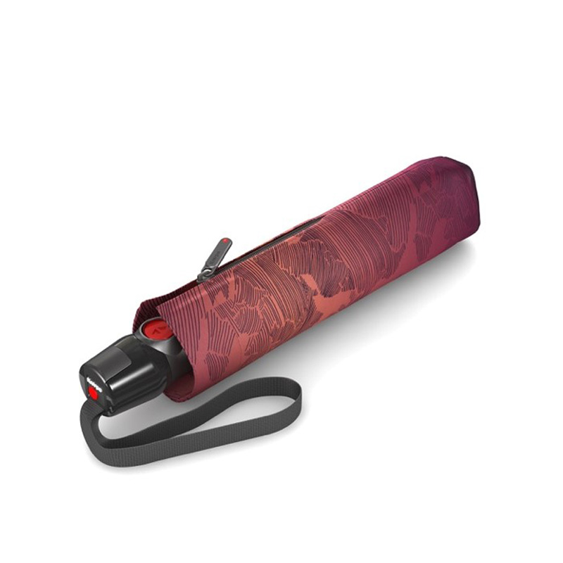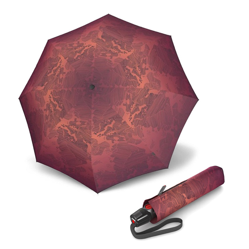 Ομπρέλα γυναικεία, σπαστή, με αυτόματο άνοιγμα και κλείσιμο, κόκκινη από την Knirps.Το σχήμα και το μέγεθος της την κάνουν ιδιαίτερα εύχρηστη και πρακτική. Αποτελείται από σκελετό ιδιαίτερα ανθεκτικό και ευέλικτο ώστε να μπορεί ανταποκριθεί και στις πιο δύσκολες καιρικές συνθήκες καθώς και ύφασμα εξαιρετικής αντοχής που στεγνώνει εξαιρετικά γρήγορα.