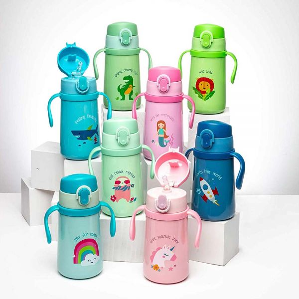 Insulated stainless steel bottle space with removable handles by Stephen Joseph.