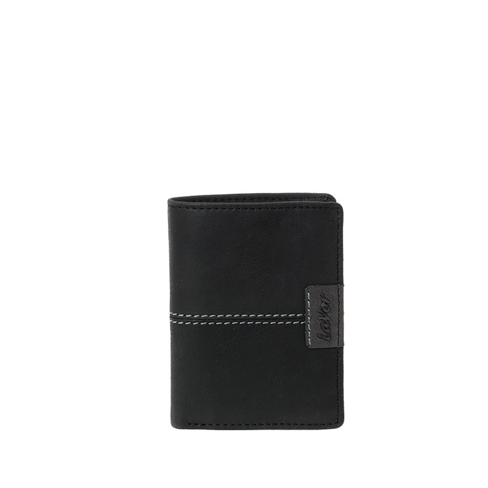 Δερμάτινο κάθετο ανδρικό πορτοφόλι σε μαύρο χρώμα από την LaVor. Διαθέτει θέσεις για χαρτονομίσματα, κάρτες και έγγραφα.