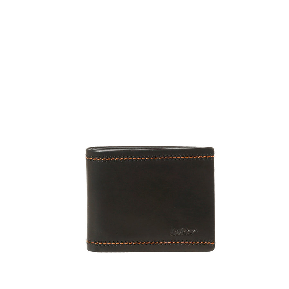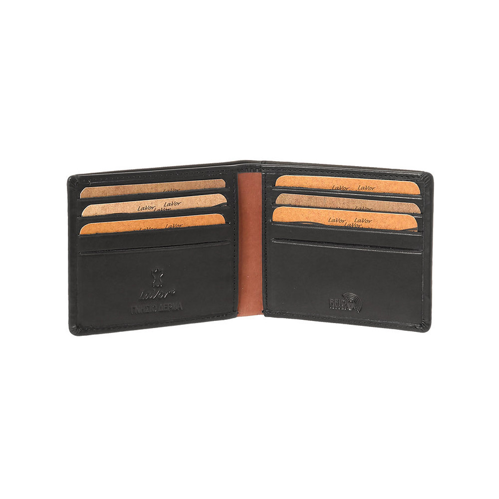 Δερμάτινο οριζόντιο ανδρικό πορτοφόλι σε μαύρο χρώμα από την LaVor. Διαθέτει θέσεις για χαρτονομίσματα, κέρματα, κάρτες και έγγραφα.