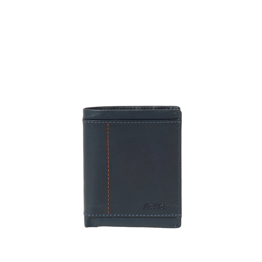 Δερμάτινο κάθετο ανδρικό πορτοφόλι σε μπλε χρώμα από την LaVor. Διαθέτει θέσεις για χαρτονομίσματα, κάρτες και έγγραφα.