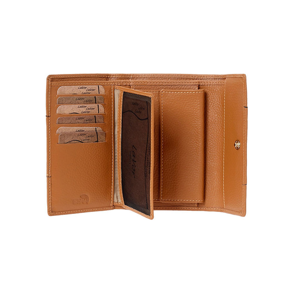 Γυναικείο πορτοφόλι οριζόντιο από μαλακό δέρμα της LaVor σε ταμπά χρώμα. Διαθέτει πολλές θέσεις για πιστωτικές κάρτες, κέρματα, ταυτότητα και έγραφα.