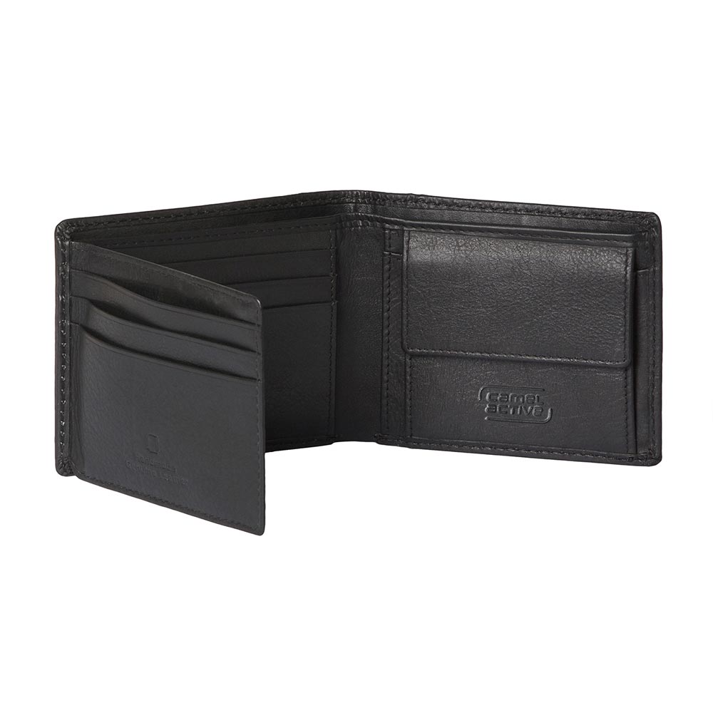 Οριζόντιο, μικρό, μαύρο πορτοφόλι με εξαιρετική ποιότητα δέρματος και ανάγλυφο το σήμα της εταιρίας. Διαθέτει θέσεις για πιστωτικές κάρτες, κέρματα, αστυνομική ταυτότητα και χαρτονομίσματα, εργονομικά σχεδιασμένο ώστε να σας εξυπηρετήσει με τον καλύτερο δυνατό τρόπο στις καθημερινές σας δραστηριότητες.