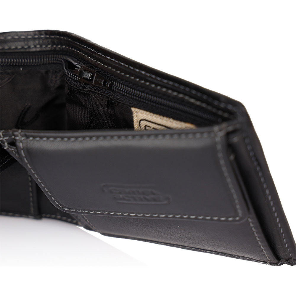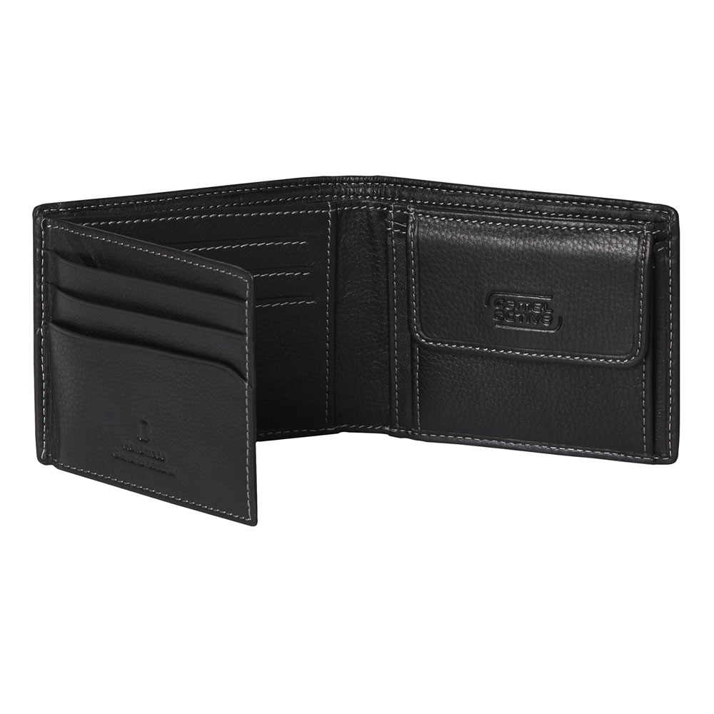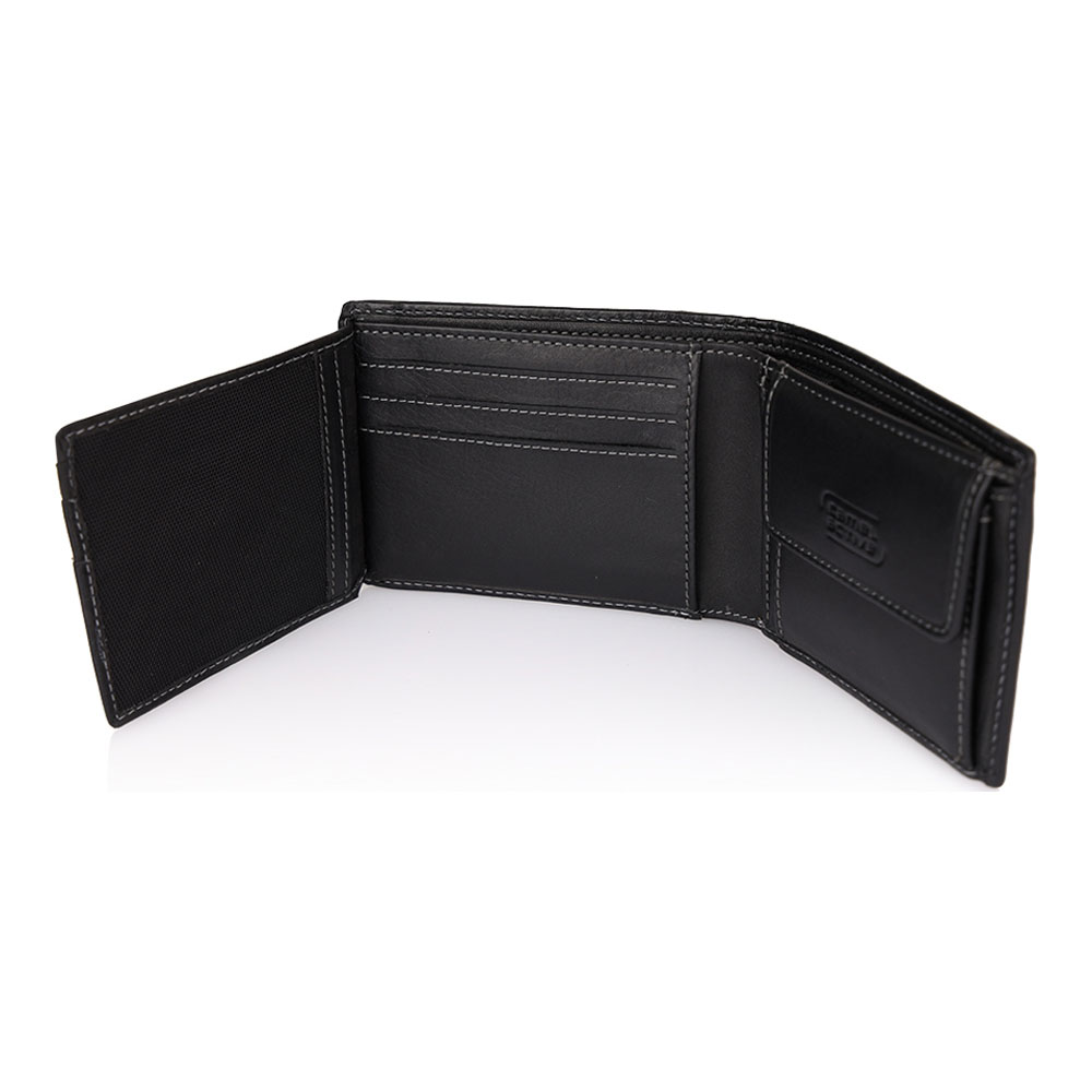 Οριζόντιο, μικρό, μαύρο πορτοφόλι με εξαιρετική ποιότητα δέρματος και μεταλλικό το σήμα της εταιρίας. Διαθέτει θέσεις για πιστωτικές κάρτες, κέρματα, αστυνομική ταυτότητα και χαρτονομίσματα, εργονομικά σχεδιασμένο ώστε να σας εξυπηρετήσει με τον καλύτερο δυνατό τρόπο στις καθημερινές σας δραστηριότητες.
