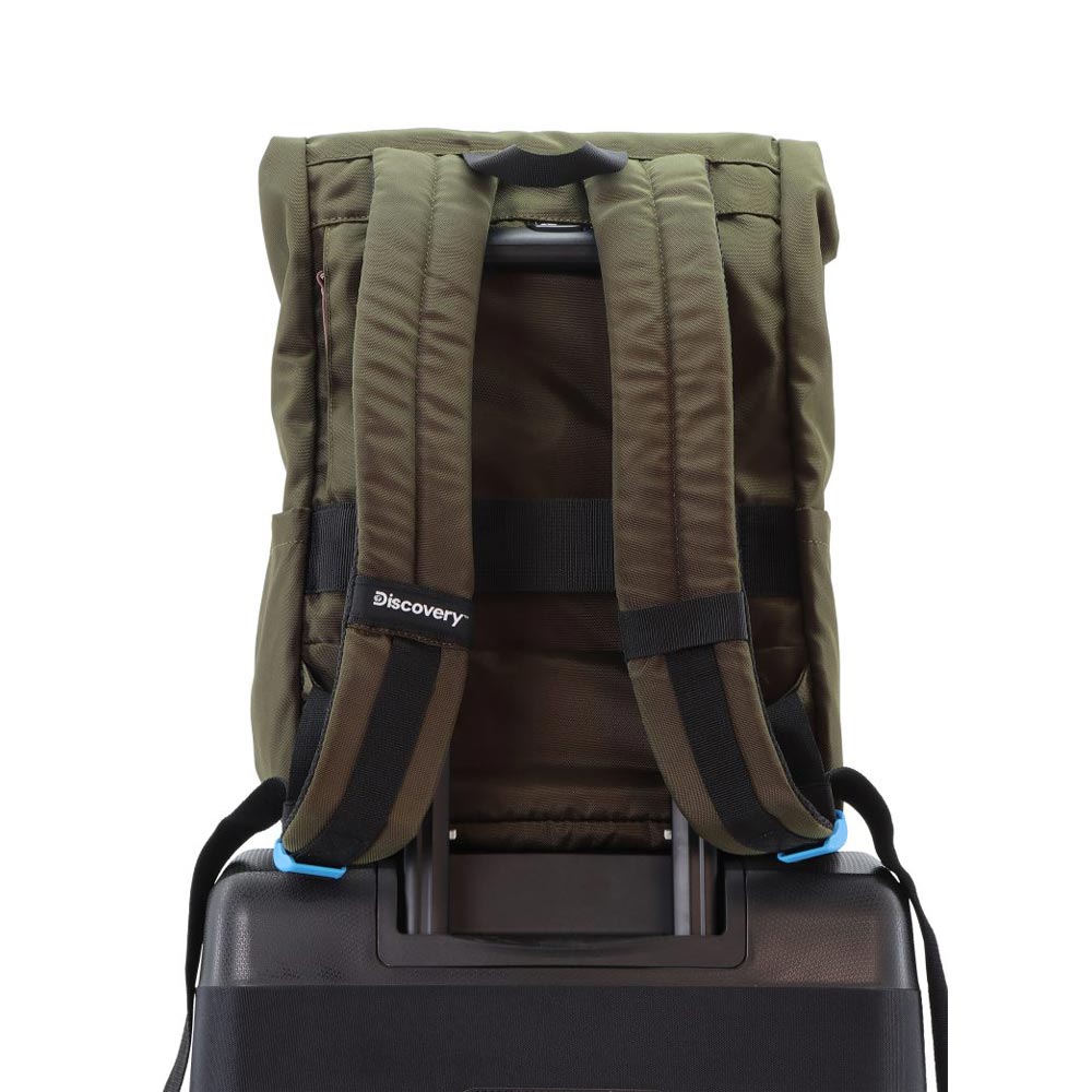 Σακίδιο πλάτης εξαιρετικά ελαφρύ και επεκτάσιμο σε χακί χρώμα από την Discovery. Διαθέτει ενισχυμένη πλάτη και ιμάντες και αποτελείται από μία κεντρική θέση με εσωτερικές τσέπες κατάλληλες να φιλοξενήσουν όλα τα καθημερινά σας αντικείμενα ( laptop, tablet, πορτοφόλι, έγγραφα). Κατασκευασμένο από υλικό ιδιαίτερα ανθεκτικό και αδιάβροχο.