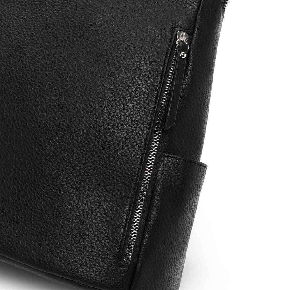 Σακίδιο πλάτης γυναικείο, μαύρο, κατασκευασμένο από εξαιρετικής ποιότητας συνθετικό υλικό, από στην σειρά Tours Rue 09 της Emily & Noah. Αποτελείται από μία κεντρική θήκη, δύο εσωτερικές και τρεις εξωτερικές τσέπες.