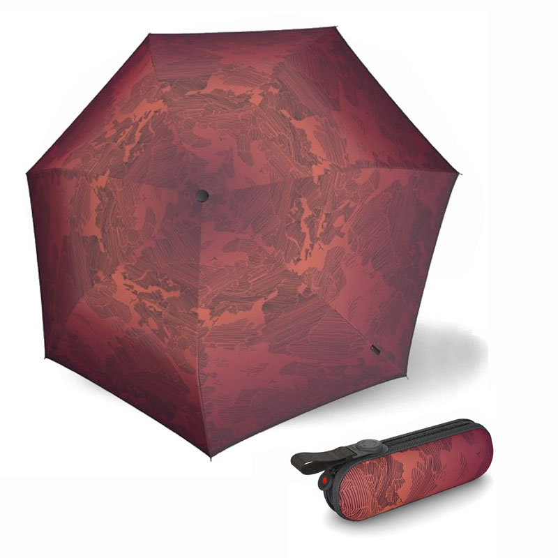 Ομπρέλα super mini, σπαστή, γυναικεία, κόκκινη, με την γνωστή ποιότητα της Knirps. Αποτελείται από σκελετό ιδιαίτερα ανθεκτικό, ειδικά σχεδιασμένο για να αντέχει στον δυνατό αέρα και την βροχή και αδιάβροχο ύφασμα που στεγνώνει πολύ γρήγορα. Εξαιτίας του μεγέθους της και της προστατευτικής της θήκης είναι ιδιαίτερα εύχρηστη αφού μπορεί να αποθηκευτεί οπουδήποτε ακόμη και έξω από την τσάντα σας.