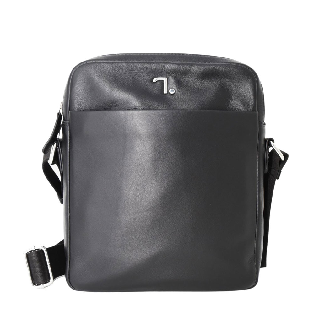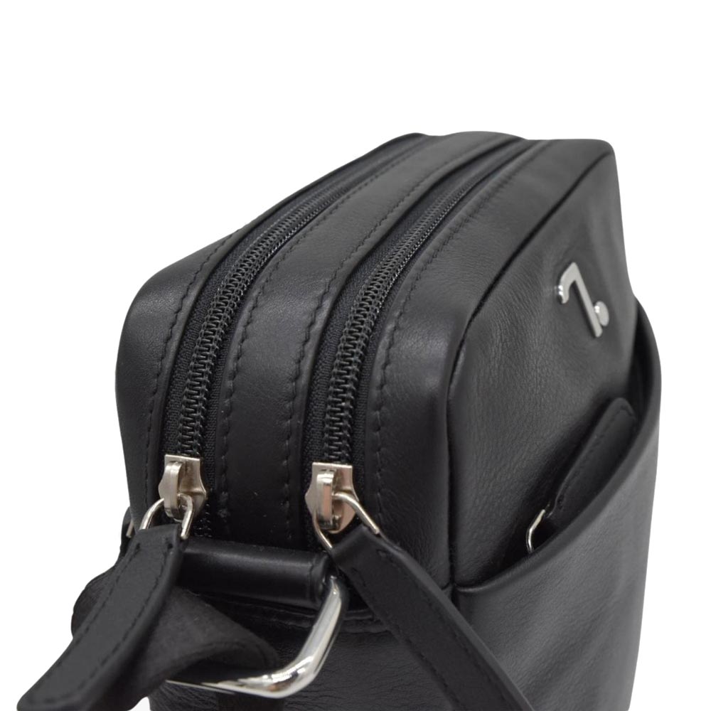 Τσάντα δερμάτινη ώμου σε μαύρο χρώμα της 7.Dots. Κατασκευασμένο από εξαιρετικής ποιότητας δέρμα, με δύο κεντρικές θέσεις, δύο εξωτερικές και δύο εσωτερικές τσέπες.