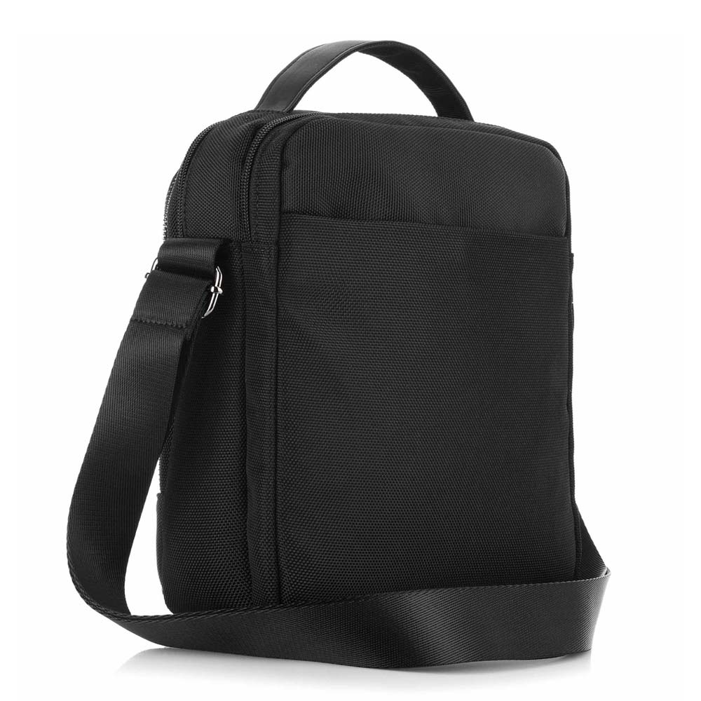 Τσάντα ανδρική από συνθετικό υλικό σε μαύρο χρώμα της Beverly Hills Polo Club. Διαθέτει δύο κεντρικές θήκες με έξι εσωτερικές και δύο εξωτερικές τσέπες.