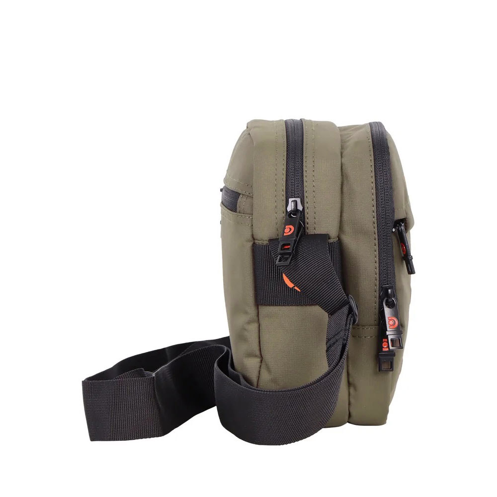 Τσαντάκι ώμου μικρό, αδιάβροχο ανδρικό χακί από την Discovery. Διαθέτει δύο κεντρικές θήκες με τρεις εσωτερικές τσέπες και δύο εξωτερικές. Ένα τσαντάκι με αντικλεπτική τσέπη με το σύστημα RFID, σε σπορ γραμμή για όλες τις ώρες.