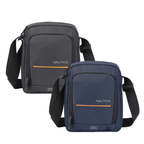 Τσaντάκι ώμου χιαστί, αδιάβροχο σε μπλε χρώμα από την Nautica. Αποτελείται από μία κεντρική θήκη με δύο τσέπες εξωτερικές και τέσσερεις εσωτερικές.