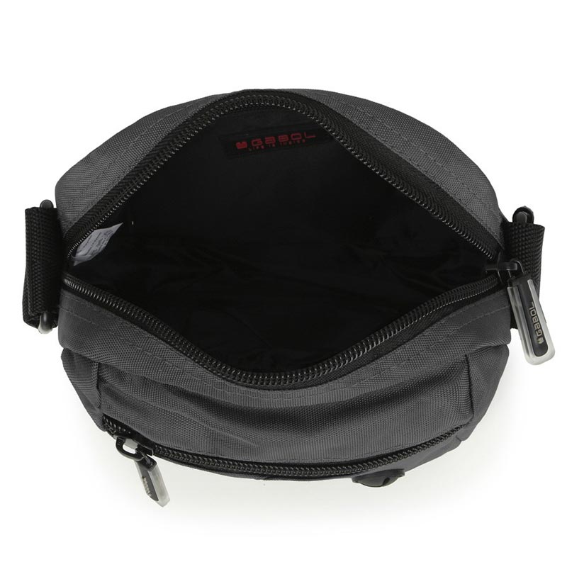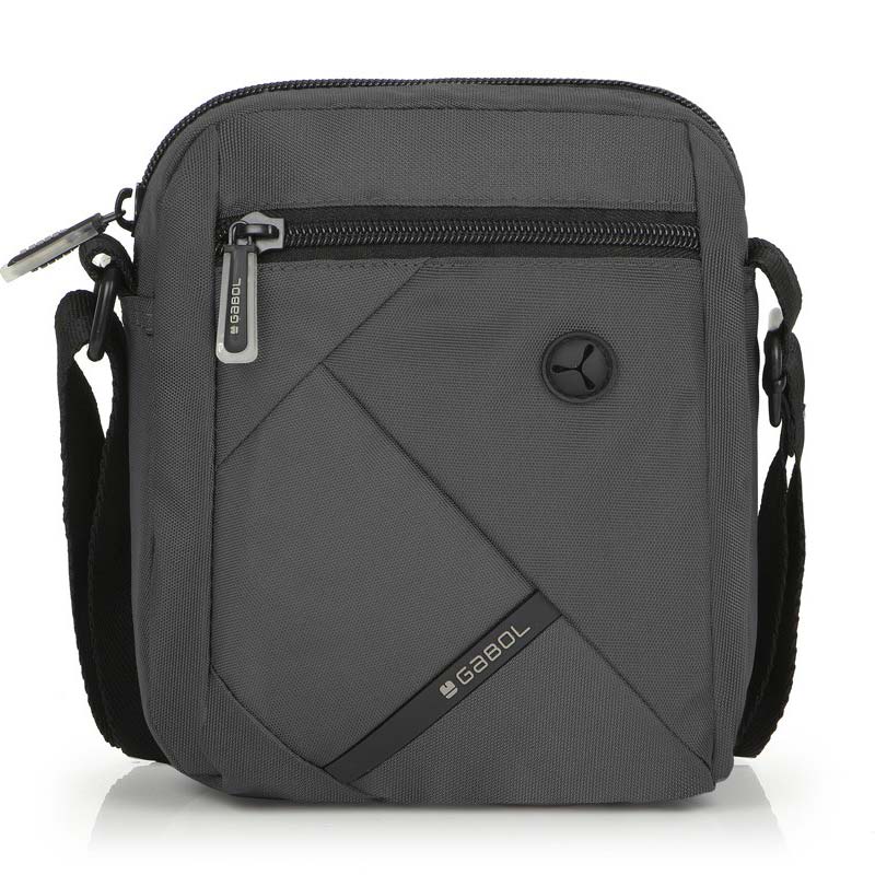 Τσαντάκι ώμου μικρού μεγέθους από συνθετικό υλικό και γκρι χρώμα της Gabol, με μία κεντρική θέση και δύο θέσεις με φερμουάρ μπροστά και πίσω. Η μπροστινή θήκη διαθέτει ειδικό άνοιγμα για ακουστικά ενώ η κεντρική έχει δύο θήκες μικρότερες εσωτερικές.