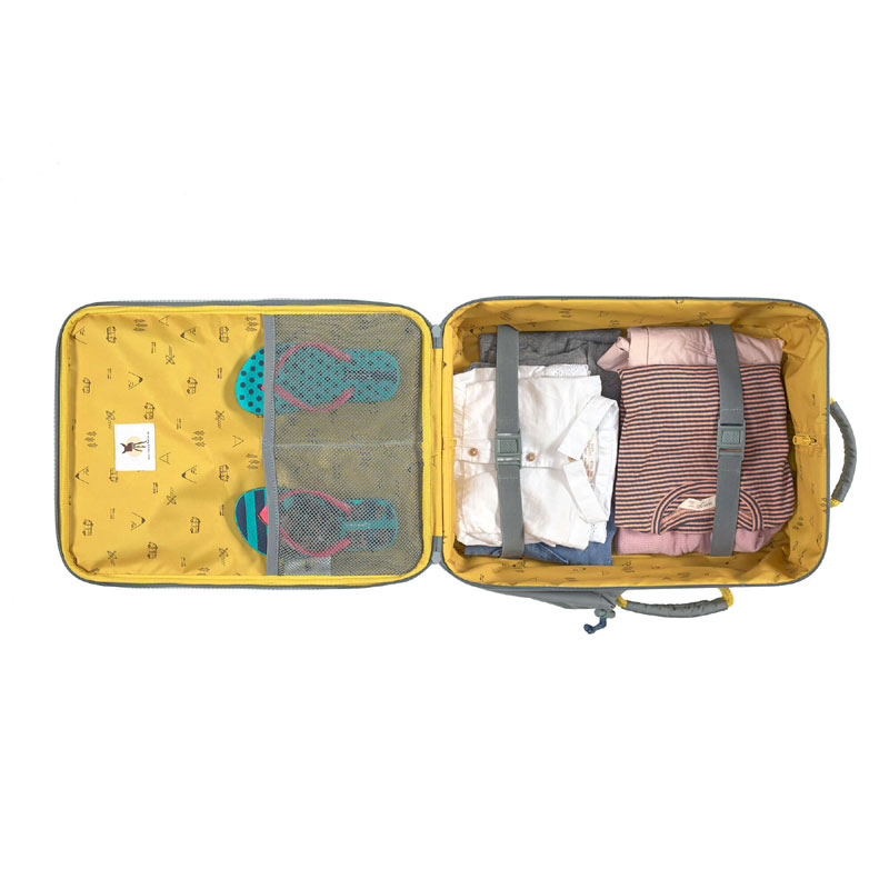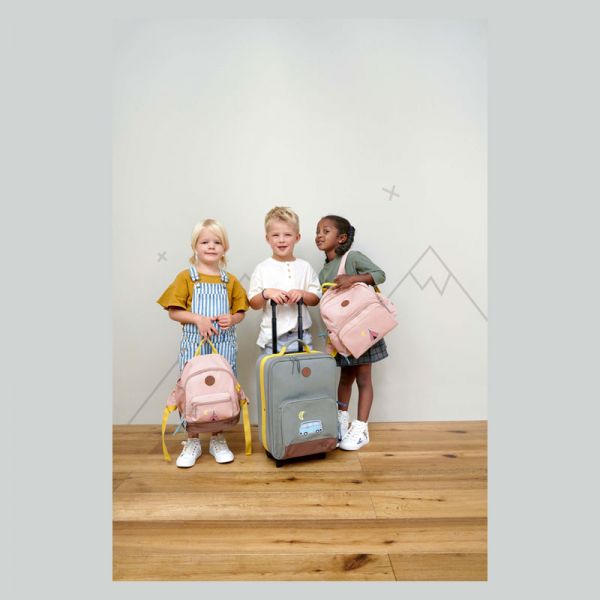 Βαλίτσα υφασμάτινη, τρόλεϊ, λεωφορείο ειδικά σχεδιασμένη για παιδιά από την Lässig. Διαθέτει μια κεντρική θέση με δύο εσωτερικές και δύο εξωτερικές τσέπες, ετικέτα αναγραφής του ονόματος και ένα σακίδιο πλάτης - πουγκί για την καλύτερη οργάνωση των αντικειμένων σας. Μία βαλίτσα από μία εταιρία η οποία είναι διάσημη για την ποιότητα και τον εργονομικό σχεδιασμό της.