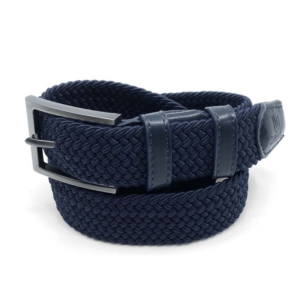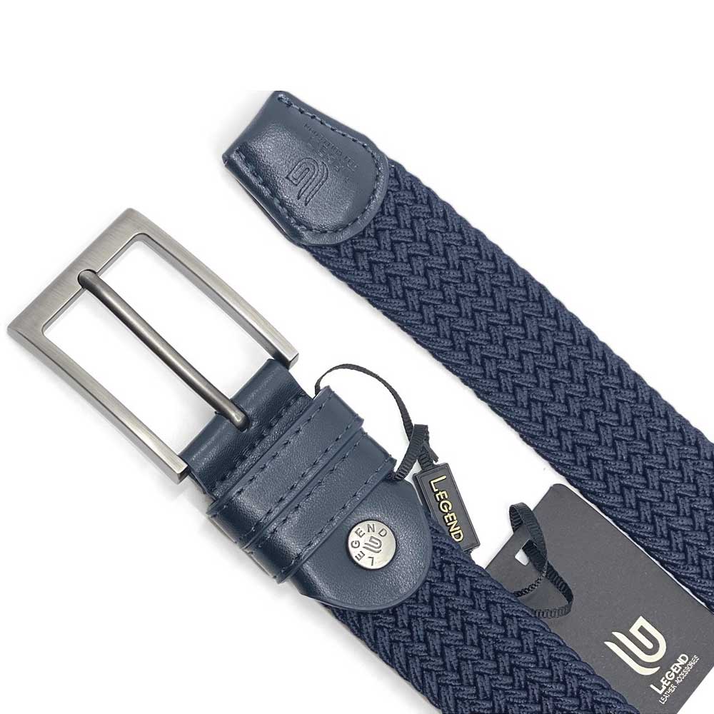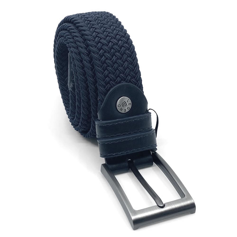 Ανδρική ελαστική πλεκτή ζώνη σε μπλε χρώμα με δερμάτινες λεπτομέρειες και μεταλλική αγκράφα από τη Legend.